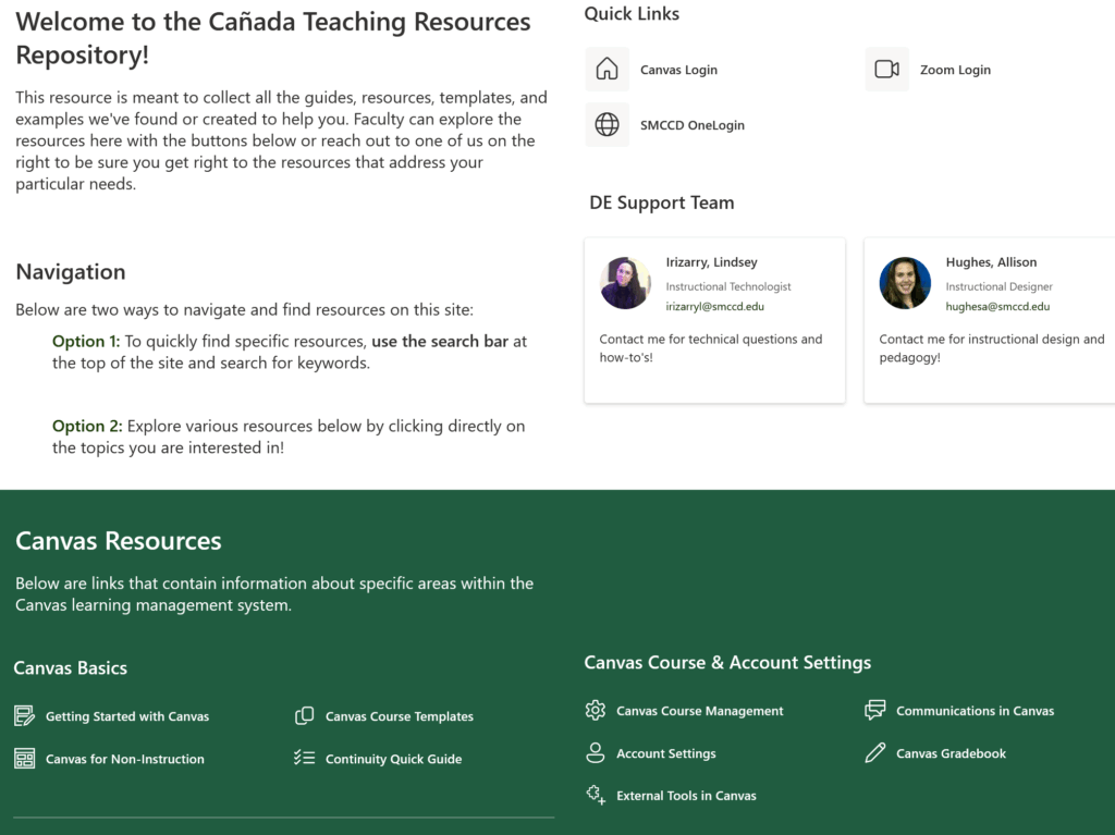 We created a Faculty Repository on Canvas a few years ago, but having it in Canvas seemed to be to out-of-the-way. We also had many guides posted across multiple websites. Having resources in so many different places made it difficult to manage as a larger team, and difficult for faculty to find all of the information they’re looking for.